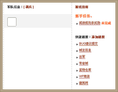 左边:兵力区,本城所有英雄及所带的兵力、兵种及数量都在此处显示;