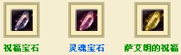 游戏的过程中,玩家狩猎或者完成任务的时候,都会获得一种称之为“祝福、灵魂”的宝石,另外在VIP商店里的道具商店中还有一种可以提升合成成功率的宝石“萨艾朗的祝福”,“祝福、灵魂”宝石除了在狩猎或任务得到外,还可以在地图中心的天空之城用七龙声望(攻击恶魔城或活动奖励)兑换。