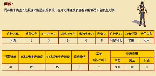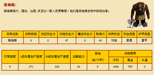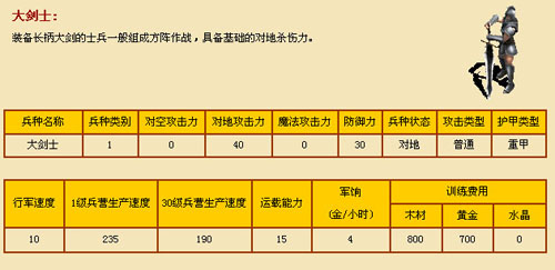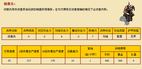 另外介绍一下初级兵种的基本资料: