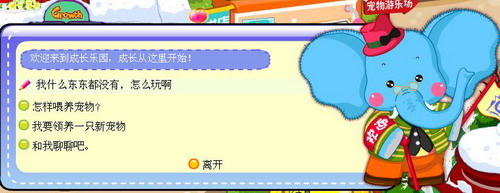 然后和大象伯伯对话,选择第一个,就可以开始我们在成长乐园里的第一个任务啦