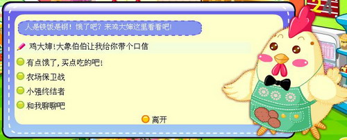 点击鸡大婶,然后选择”鸡大婶,大象伯伯让我给你带个口信“这一选项