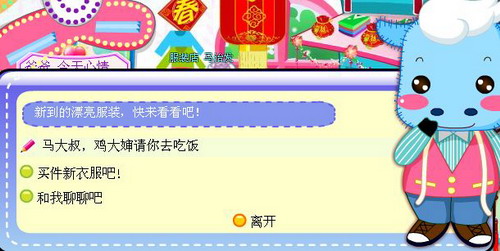 之后鸡大婶就会要求我们给服装店的马大叔带口信来鸡大婶这吃饭。