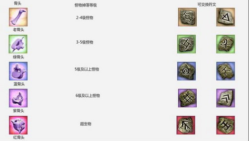 图中显示的是各声望阶段所需求的任务道具,前期可以使用老骨头这类低级任务材料,后期则需要其它高级道具,越高级的道具越难获得,但是从中获得的声望和藏宝符文都也随之提高。开启符文需要一定的材料,而且还要去特定的地图寻找宝藏,整个过程十分刺激。