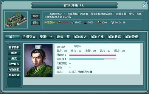 武力:如果城主御驾亲征,或者坐阵防守,则对全军的攻击力有加成。