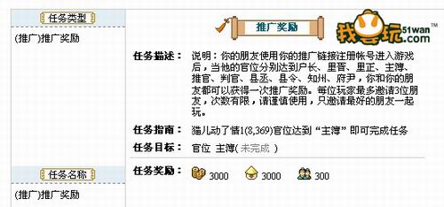 如您推广的好友的官位从“户长”升级到“里胥”直至府尹,每个级别您都可以得到对应的资源奖励。