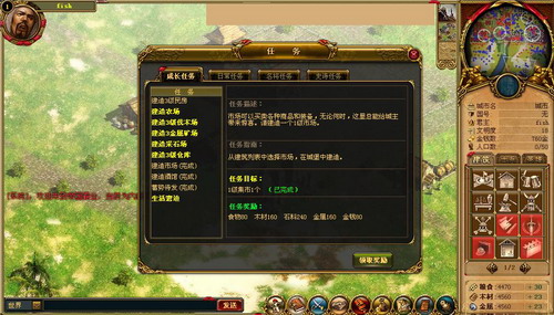 游戏一开始,便有大量任务来指导新手玩家迅速上手,任务系统相当详尽,基本为一个新手玩家准备了一条最为合适的发展之路,顺便说一句,大量任务带来的不仅是城市的雏形,更多的是丰富的资源。