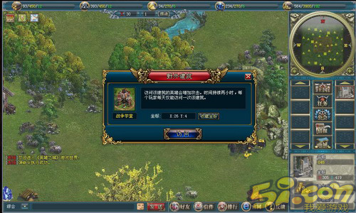 这些建筑分别是战争学堂、防御塔、启蒙之书、祈愿之庙。这四种建筑分别对应英雄的四种属性——也就是攻击、防御、知识、速度。每名英雄访问过一座建筑后,将获得两小时的BUFF(比如你的英雄访问战争学堂后,在两小时内会获得10%攻击的BUFF效果),别小看这10%哦!在初期也许还不觉得,但在游戏中后期,这10%很可能将决定战斗的结果呢!