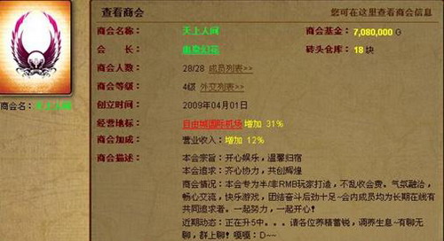 商会是玩家们团结的体现,是区域势力的组织,是会员们之间相互联系的一个重要纽带。一个商会的兴衰除了会长的正确领导外,还需要会员们的共同维护。加入商会的玩家有收入的加成,商会一共有五个等级,等级越高,能带给会员的收益也就越高。