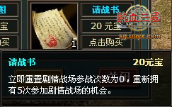 先来看“请战书”的效果:立即重置剧情战场参战次数为0,重新拥有5次参加剧情战场的机会。
