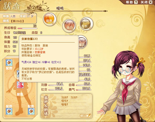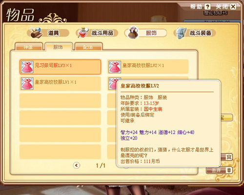 穿上了LV2的衣服,除了属性变化,是没有太多其他感觉的,因为样子和原来的一样~~,SO,很希望设计者让LV2比LV1多一些东西~ 哪怕是一朵小花也好呀!