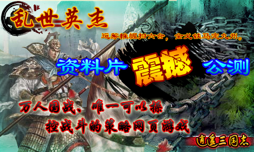 新的征程,新的开始。新服的开放就是为了给大家一个崭新的机会来表现自己。真正的男儿身处乱世的三国,绝对不会自怨自艾,他们肯定会追寻强者的足迹。如同那些用自己的行动使得三国历史的银河群星灿烂的英雄们。目前黄巾贼作乱,乱徒蛊惑民心、到处抢掠,这所有的一切让每个热血男儿愤慨,恨不能立刻剿灭他们,还黎民一个太平盛世。所以让我们招募贤才,开荒聚众,造城治兵,招兵买马,提升自己的官职,这样才能招募到更多的英雄;建立一支可以扫平天下的虎贲之士,为****和天下黎民造福吧。