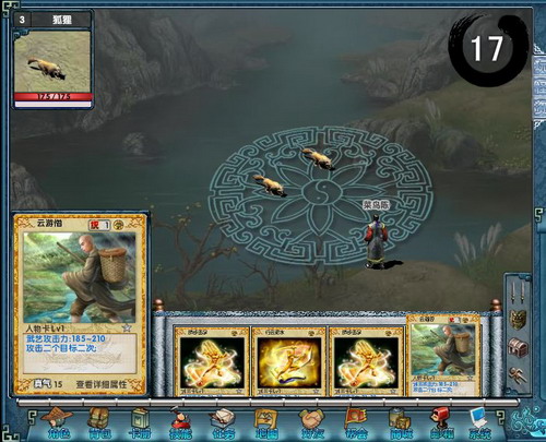 技能卡除了普通卡,还有金、木、水、火、土五种属性,其中,金卡的单体攻击最高,火卡可以对多个目标进攻,水卡可以恢复血和内力,木、土可以产生各种各样的效果,比如增加己方的攻防效果,给对方一个毒砂掌,让对方持续掉血,卡牌很丰富,请慢慢体验。
