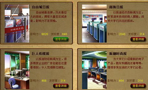现在《商业大亨》详细为你展现各种媒体方式、媒体效果和媒体打击: