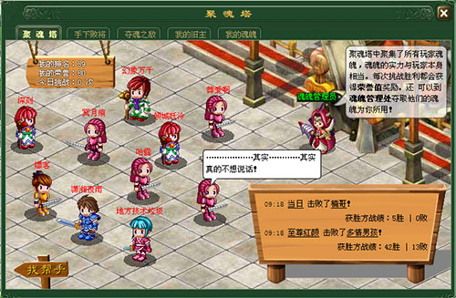 在聚魂塔里,可以挑战他人魂魄,只要胜利后,就能够摄取他人的魂魄。