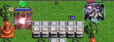 6-打提前量:这也算是高级一点点的技巧了,所谓提前量,就是你炮塔所对准的方向和BOSS的前进方向呈90度角的时候,你打出去的炮弹,最终并没有落在敌人的车身上,而仅仅是擦中敌人的车头而已,在游戏中,这样的攻击也是判定有效的.在战斗中,如果你的子弹擦中了BOSS车头,按照规则,BOSS会马上原地转身向你这个方向行进,而这时的你只要退出这个路线一点点就可以离开它的攻击范围.这种技巧就需要一定个练习和感觉了,毕竟在不同距离对于不同速度敌人的发弹时机都不一样……这个下面提前量的图我是截取得有些晚,这个截图有延迟也很郁闷呢!