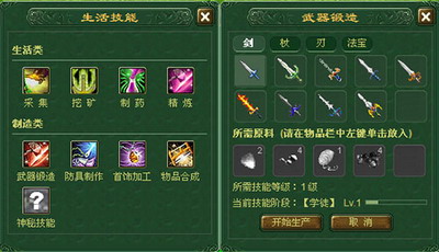 首先,打开游戏中"生产"界面,可以看到不同的制造类选项.选择好相应的制造类选项之后,则出现相应的装备制造界面.然后点击想要打造的装备,并放入其打造所需的材料,点击"开始生产"即可成功打造出装备.打造出的装备颜色和属性是随即产生的.只要人品够好,打造出紫装完全没有问题.