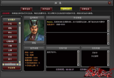 官职任务——体验仕途多舛,感受奉公爱民,履行职责还是贪污敛财?《决战天下》的任务系统,让玩家在战争之外,也体验到作为一城之主的各种感受。从小小什伍直至大权在握,从解决邻里纠纷到整治贪官污吏……每一步都让你不愿错过!