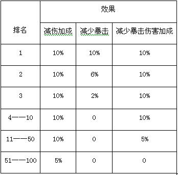 综合战力排行:综合排行是所有坦克的总排行,在这里名列首位就代表你的坦克拥有了最强大的综合战斗力(即战力).登上这个榜单能让坦克获得减伤加成、减少暴击、减少暴击伤害加成三种属性加成,排名越靠前就能获得越多加成.具体加成百分比如下表所示: