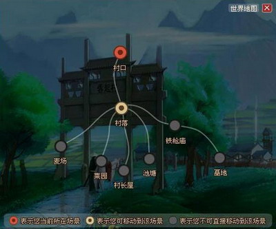 村长屋、铁枪庙及其它场景都有NPC提供任务及帮助,墓地是授业恩师的拜祭场所。