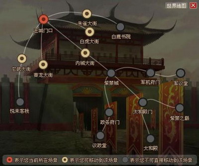 先来看看我们幅员辽阔的武侠世界版图吧,随着级别的升高,您终将成就纵横四海的武侠之梦!