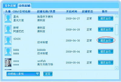 例如图2在合作关系中选择“42424”点击“请求合作”后,这时候玩家之前若没有和“42424”进行名片互换交为好友的话,那么这里会有秘书提示,例如图3“需要与对方在名片互换之后,才能进行商业合作”。也就是说店铺合作前提是双方处于友好状态。若是与“42424”互换名片成为好友后,就成功完成了一项店铺合作。