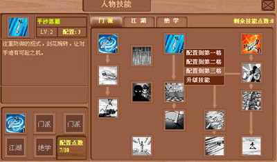 加入门派后当然就可以学习门派技能了,点击技能按钮进入技能界面,达成技能学习条件后,单击技能图标就可以学习技能,学会的技能图标就变成彩色啦!