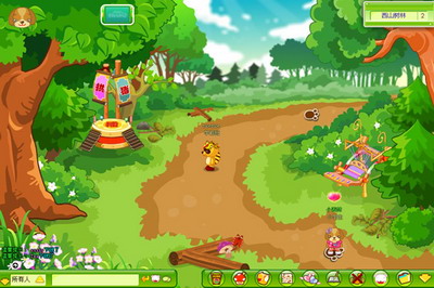 接下来去逛逛西山树林。这里茂密的森林能在炎热的夏天让你勃勃生机,是不是一下子就有了精神。这里有拱猪大擂台,各路拱猪高手齐聚一堂,看你不能一展拳脚,过关斩将,笑傲拱猪大擂台:)擂台的旁边是一台神秘的魔法织布机,它一直在咯吱咯吱地动着……原来是在为小朋友们制作帐篷布,那我们不去打扰它了。有只漂亮但却很调皮的蝴蝶一直在你的头上飞来飞去的,真想把它抓下来。啊……真的抓下来了,好漂亮的一个蝴蝶标本,赶快放到我的家里去炫耀一下。还有好多其他的东西,圆木啊,石块啊,……可以用来做打造武器的原料。