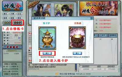 《神魔令》作为中国首款卡牌对战网页游戏,自上市以来,就以其独特的选材、新颖的游戏方式、加以丰富奇妙的幻想,游戏世界活泼欢快。轻松地游戏对战模式,3分钟便可以完成一场对战,让玩家在最短时间内体验到最大的游戏乐趣。奇乐公园以精品服务理念为指导,从玩家需求出发,不断追求游戏内容的完善与丰富,首创了众多贴心的系统设置,如炼卡系统、合卡系统等等,带给玩家最佳的游戏体验。今天小编带大家来了解一下《神魔令》的炼卡系统。