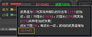 以我的这个蓝色武将为例。勇武值83,成长下限5%,每成长一级武将勇武值增加38.5至48点。计算一下(38.5~48) x 1.5=57.75~72。也就是说,使用了“紫绶麒麟披”以后每级勇武值将会增加57.75至72点,也就是说当我的蓝将到达13级时将会达到83+(57.75 x 13~72 x 13)=833~1019点勇武值!!!!如此一来,已经全面超越了同级带全套装备的橙色武将了!各位还没升级武将的朋友们,把握住这难得的机会吧!武将的前20级是最好升的了,如果用上太极玄黄旗的话,配上足够的兵,一天的时间足够了!”