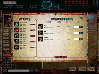 需要说明的是,在现实社会中,买彩票大多是瞎蒙乱撞,而《霸图》的商品交易则有很多值得参考的消息,比如,新手大量涌入,说明低级装备要涨价,官方要做活动,放出装备,则装备价格要下降,全区战火弥漫,装备,药水这些自然也是供不应求,有这些可以参考的消息,玩家炒起装备来就能够有的放矢,而立于不败境地。厌倦了战斗就炒炒货,赚了大钱,又想称霸天下,那就用赚来的钱去武装军队。不再是单调的战争策略,真正模拟现实中的,经济军事兼顾的准则,这一切都在《霸图》中完美的演绎。