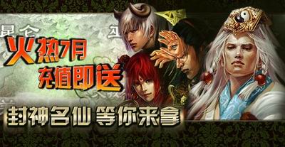 从七月八日开始为期一个月的时间里,只要玩家单次充值满200元宝就可以获得一个特制的活动宝箱,可以随机开出梅山兄弟和啸天神犬,多充多得!而如果单次充值满2000元宝的话除了可以得到10个活动宝箱以外,还可以获得附赠的1个名仙宝箱(阐教,截教,西方教随机),里面包含了三大教的名仙一个。当然里面含有谁就看大家的运气了。