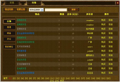 4、市场搜索功能:可输入人名、物品名字进行搜索,也可以点击市场列表中的文字连接;