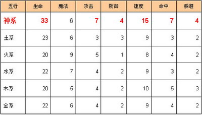 从表中可以看出神系宠物的加成率远远超过其它系。同时,神系类宠物的初始属性也是远远高于其它系别的。
