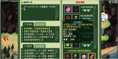 凡是在7月31日前达到35级的玩家,每人获得特殊形象宠物一只,在登录奖励的界面中领取。(巴巴葫芦)