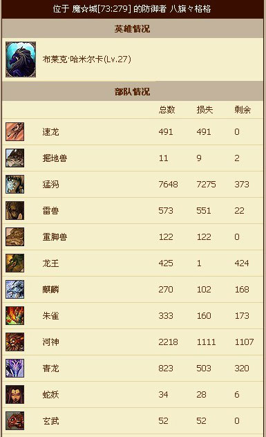 攻击方掠夺了 0 黄金 0 珠宝和 0 法力石。