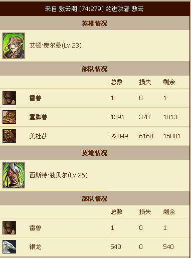 攻击方损失了 24943 单位, 防御方损失了 26438 单位。
