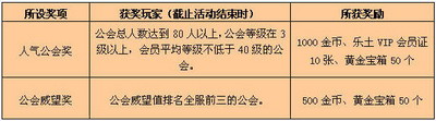 注:会员平均等级=会员等级之和/人数,活动结束后所有符合条件的公会都能获得奖励!