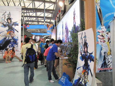 图为金山公司《剑侠情缘3》的游戏体验区。