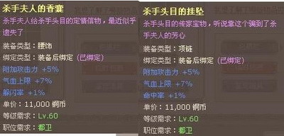 先看杀手头目的挂坠&杀手夫人的香囊的属性和需要的石头。