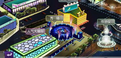 动态效果下,人气擂台的颜色随时变幻,传送仪和秀场的灯光都有闪动效果。