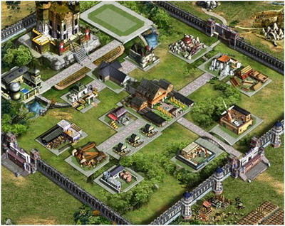 可拥有建筑:石料坊、木料坊、冶铁厂、磨坊、修道院、外交院、酒馆、住房、兵营、城镇中心、大学、市场、马厩、靶场、巨石城墙、警戒塔