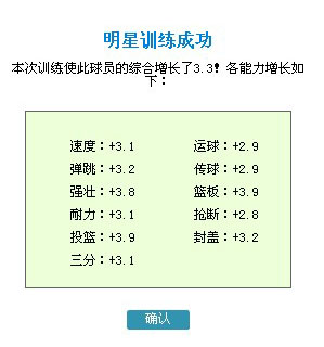 3、球星训练完成,您将看到该球员所增长的综合以及具体属性信息;(如图)