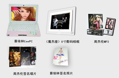1、最终大奖:华硕3G上网本(内植蔡依林数码音乐专辑)