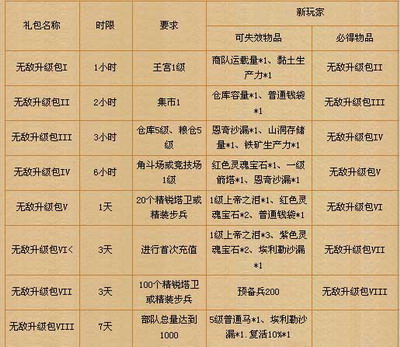 全新策略+休闲网页游戏《王者重生》又送新礼包了!无敌升级系列包将伴随您轻松渡过新手期。