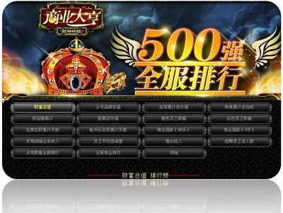活动说明:排行榜会在游戏中增加一个按钮,点击后会直接连接到特定的网页,500强就在网页中显示,玩家可以点击上面任意的项目查看排行情况,排行榜的排行项目如下: