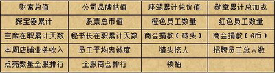 排行榜里有财富、员工、商会等全方位的项目,悉心经营突出的一项,还是大施拳脚,一手掌控全局,就看您选择何种策略了!