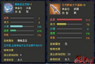 《决战天下》的锻造系统,可以使装备或武器锻造升级最高达到+9。每升级一次,装备的属性加成增长5%。这么算来,虽然每升一级只加了10多点属性,乍一看似乎有些可怜,但当它被提升9次后,就相当于属性提升了45%。想象一下吧,一个极品胸甲原始体力在200多,那么经过9次锻造后,它将多出来100多点,这个数值相当于武将升两级所获得的点数。那么如果6件装备全部升到9级,多出来的点数就相当于武将升10级所获得的点数,这是多么惊人的数值呀!