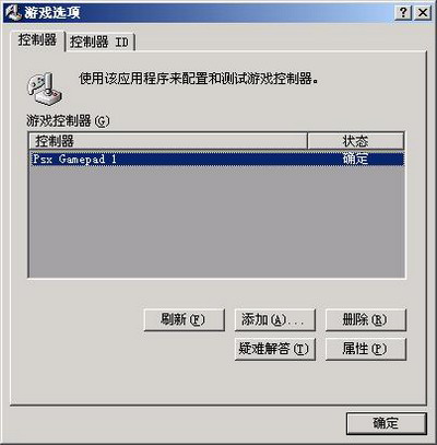第二步、安装手柄硬件,并在控制面板里面的“游戏选项”测试显示为“确定“状态。