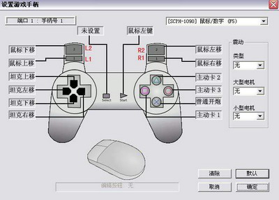 这里我设定的是手柄顶端的4个按钮,左面的是控制鼠标的上下移动,右面的是控制鼠标的左右移动,至于鼠标左键的确定操作,我设定由我手柄的“START”确定按钮来完成,大家设定的时候可以参考。