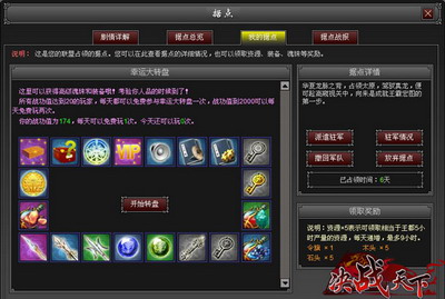 当然,《决战天下》的据点战可不是有据点打、占领、拿资源和玩幸运大转盘就行这么简单。作为联盟间的正面对决,没有任何一个联盟可以拥有对据点的永久统治权。在以上的规则前提下,各区各联盟在每周都面临着挑战。官方在每周五17点至18点之间,将清空各服务器大型据点的占领信息。如此一来,各服务器的所有联盟都需要重新申请挑战大型据点。